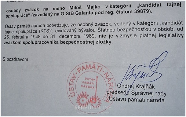 Keď niekedy čítam diskusiu na Seredonline, často sa v nadávkach dozvedám, že Miloš Majko bol „eštébak“. Niekto túto informáciu vedome opakovane pripomína. Bol som zvedavý, či je to pravdivé tvrdenie. Takže som zadal do vyhľadávača Ústavu pamäti národa zmieňované meno. A zobrazila sa mi informácia, že Miloš Majko bol kandidátom tajnej spolupráce (!).