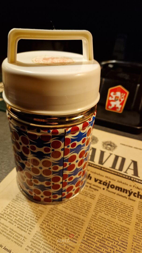 Bolo ich viac typov, no všetky vyzerali podobne. Široké hrdlo a tvar odlišovali túto termosku od bežnej na čaj alebo kávu. Prípadne studené nápoje.