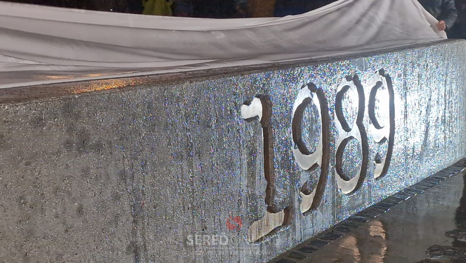 Ani skutočne nepríjemné daždivé počasie neodradilo niekoľko tisíc ľudí od účasti na slávnostnom odhalení pamätníka, ktorý bude nielen občanom, ale aj predstaviteľom štátu trvale pripomínať, že do funkcií sa dostali len vďaka občanom a demokratickým zmenám, ktoré slobodné voľby umožnili.