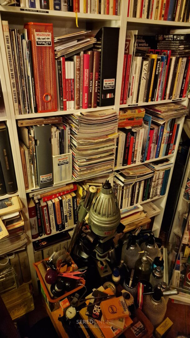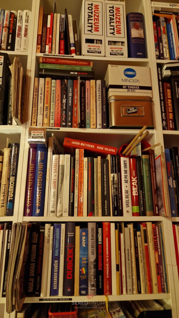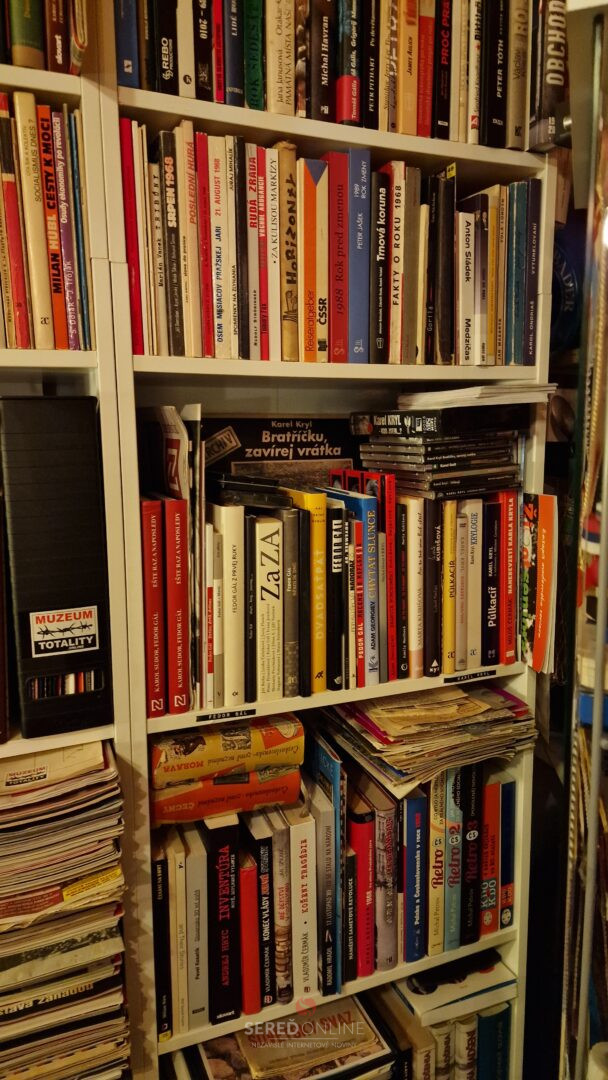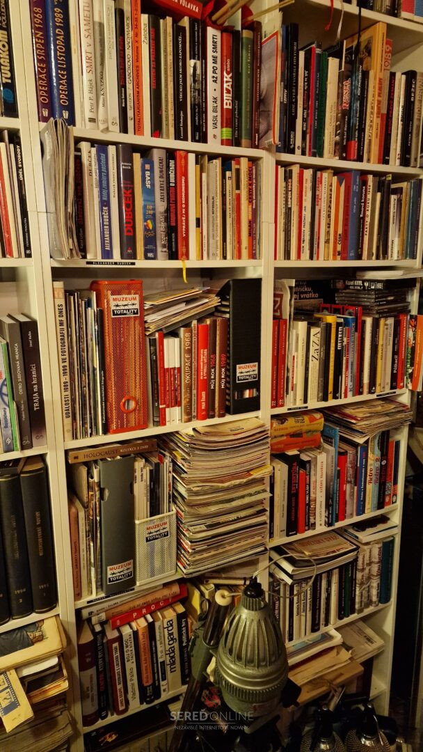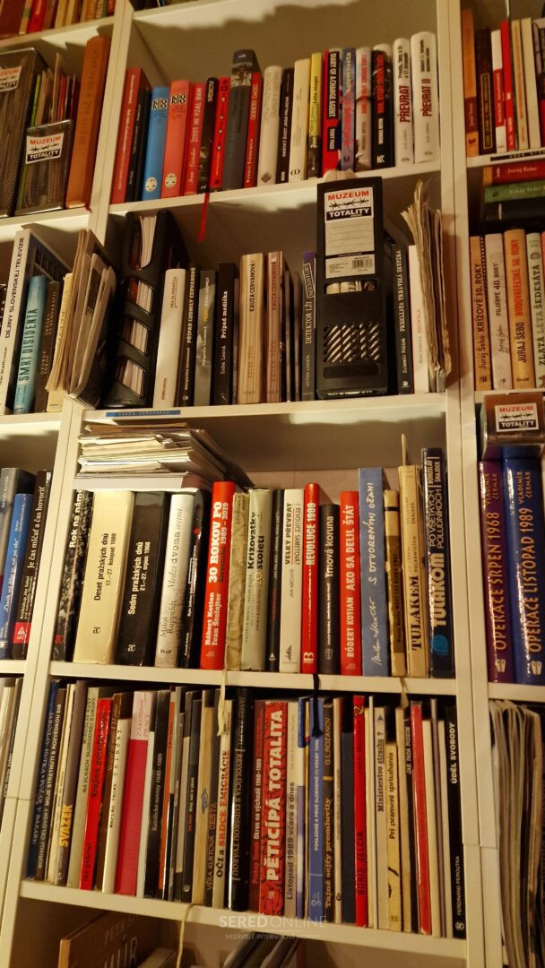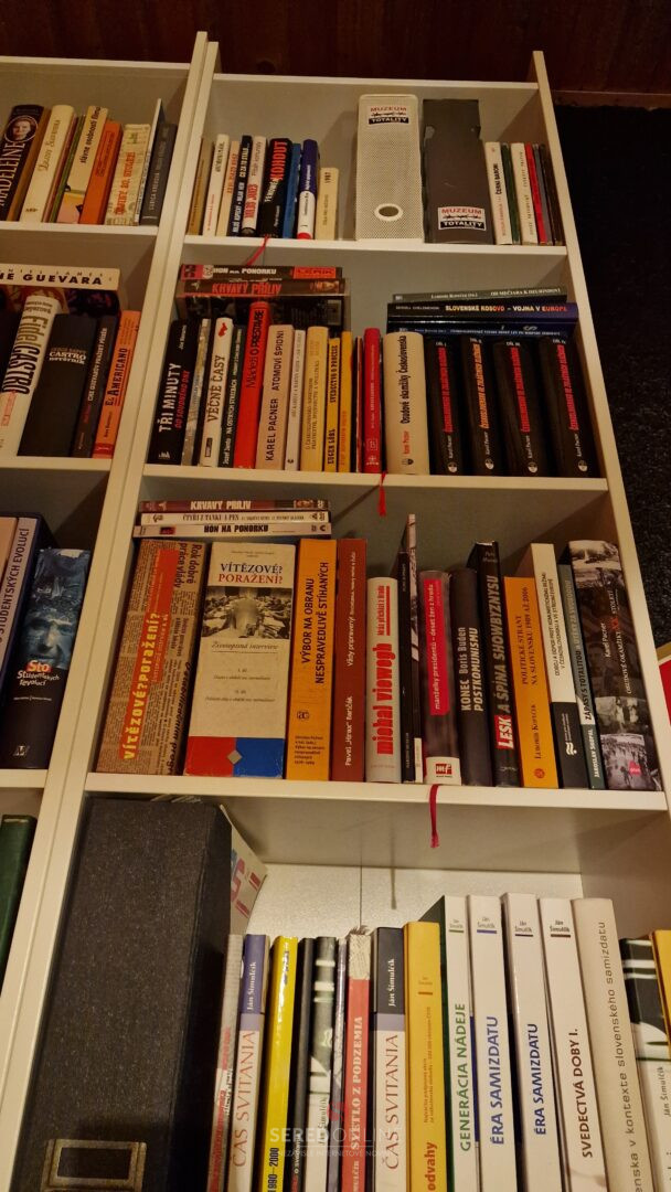 Samozrejme, že reč je konkrétne o Knižnici Múzea totality. Okrem tej máme tisíce kníh aj v štúdiu. Ide o tituly cestovateľského charakteru, encyklopédie a rôzne iné knihy napr. na tému 1. a 2. Svetovej vojny, či k vražde Jána Kuciaka a Martiny Kušnírovej. Atlasy, mapy a veľa ďalších.