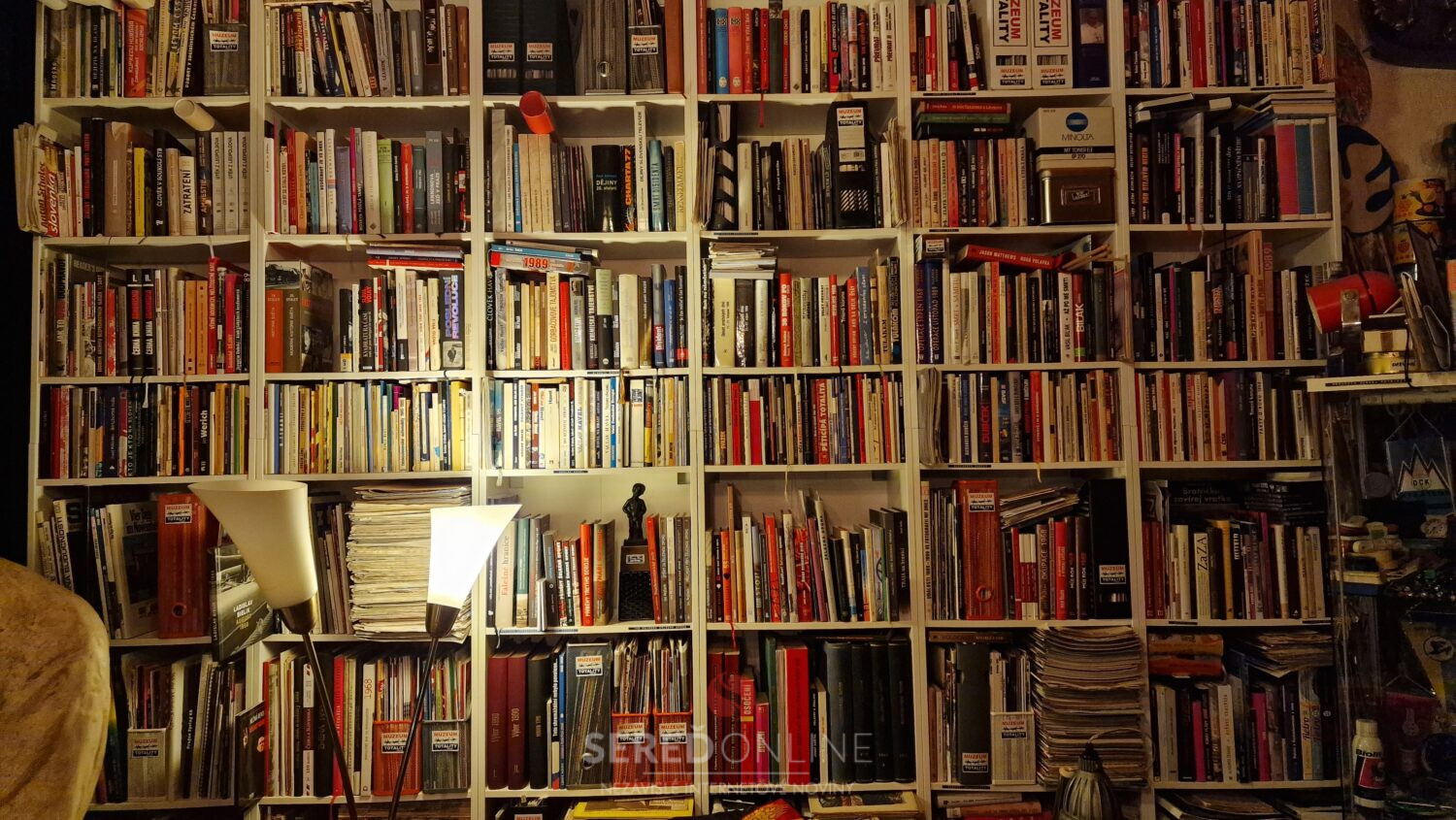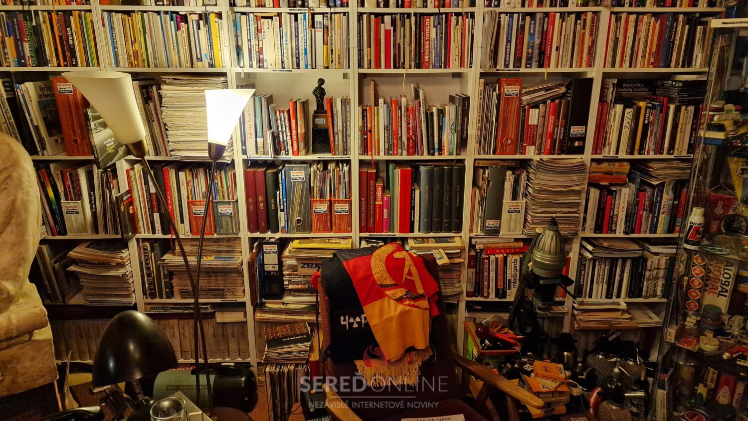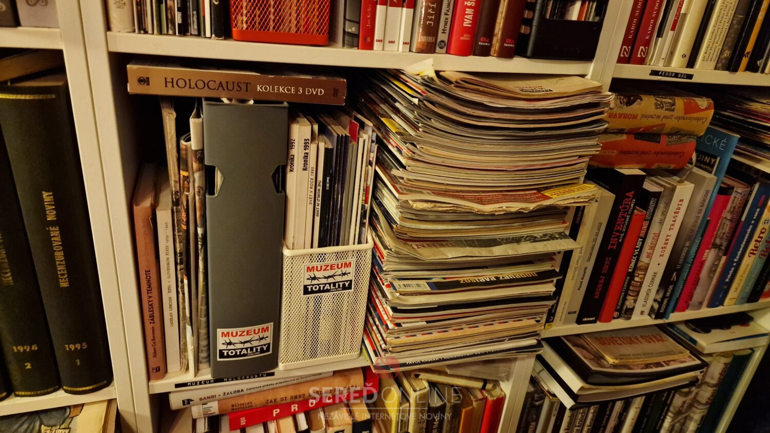 Samozrejme, že reč je konkrétne o Knižnici Múzea totality. Okrem tej máme tisíce kníh aj v štúdiu. Ide o tituly cestovateľského charakteru, encyklopédie a rôzne iné knihy napr. na tému 1. a 2. Svetovej vojny, či k vražde Jána Kuciaka a Martiny Kušnírovej. Atlasy, mapy a veľa ďalších.