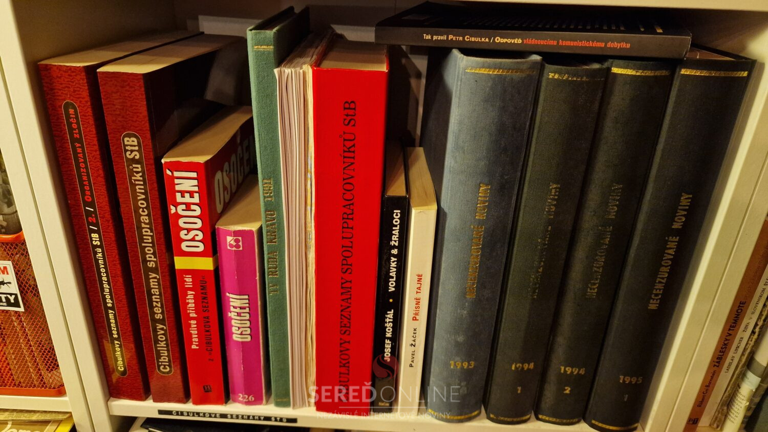 Kompletné vydania necenzurovaných novín Ty rudá krávo máme v knižnici Múzea totality s venovaním autora Petra Cibulku.