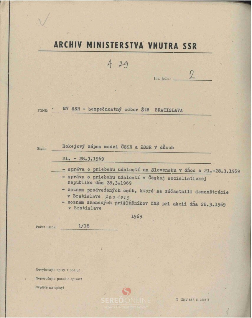 Takto opisuje udalosti z 28. marca 1969 Štátna bezpečnosť vo svojej zvodke k situácii počas majstrovstiev sveta v ľadovom hokeji vo Švédsku, v ktorých československá reprezentácia porazila Sovietsky zväz.